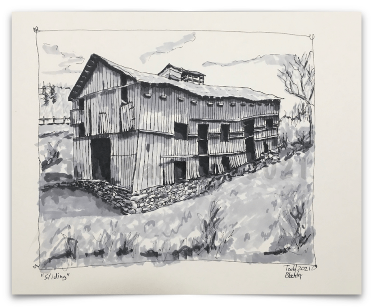 A number of these drawing are part of a series of barns that are located around where I live (just above Asheville, NC, back where we used to live and still own a house (Park City, UT) or of just misc areas and subjects.