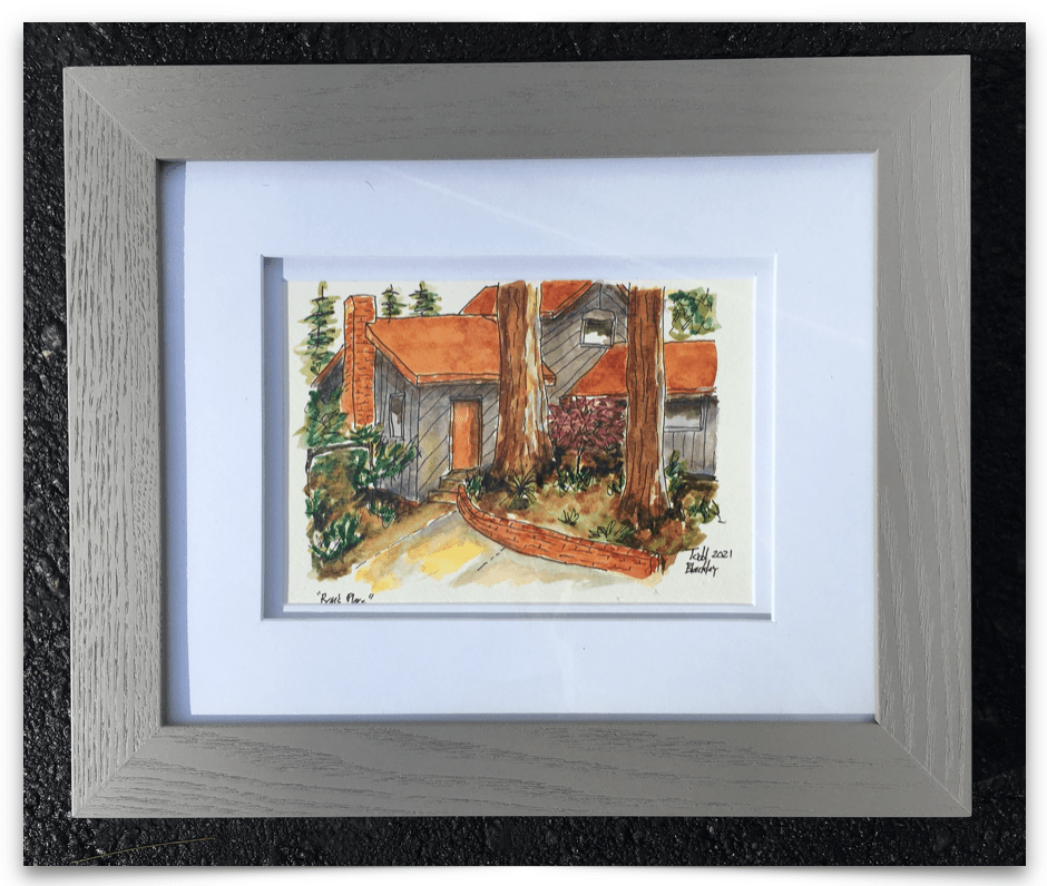 Ink and Watercolor, Approximately 5 x 8 inches. This was a commissioned piece for a clients house in Napa Valley, CA in the redwoods. I also have a video of the creation of the marker study, which was also given to the client.