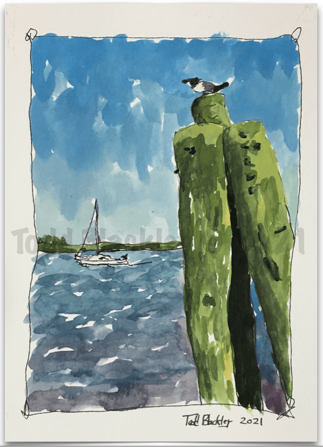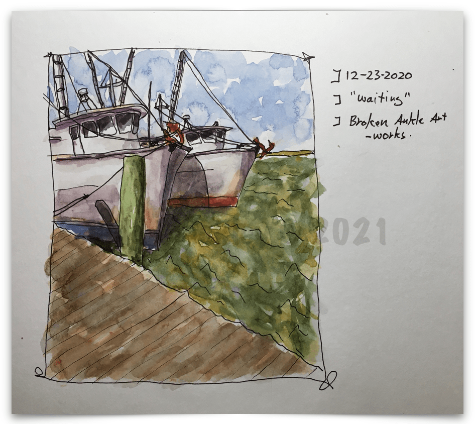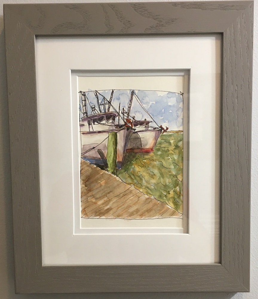 Ink and Watercolor, Approximately 5 x 8 inches. This is also from Apalachicola, FL down by the docks.