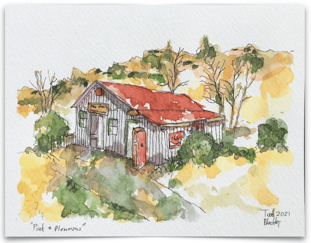Ink and Watercolor, Approximately 5 x 7 inches. This is an old store up in this area that my friends found and took a photo of. I’ve done some marker studies of it but I really like how this watercolor turned out.