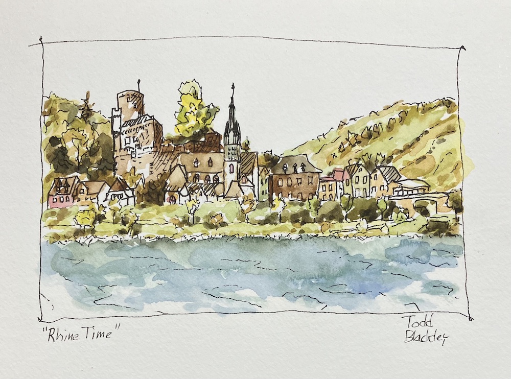 Ink and Watercolor, Approximately 5 x 7 inches. This is from Bobbie and my trip in Europe this fall.