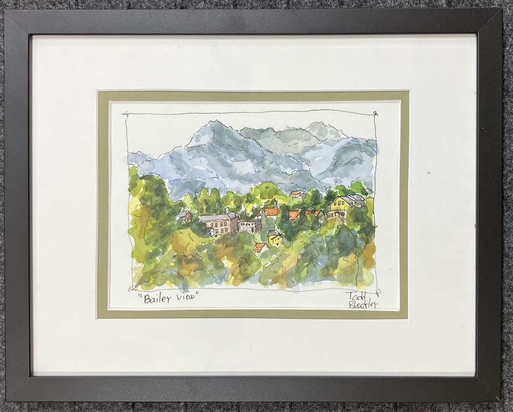 Ink and Watercolor, Approximately 5 x 7 inches. Another painting of Bailey Mt. in Mars Hill, NC.