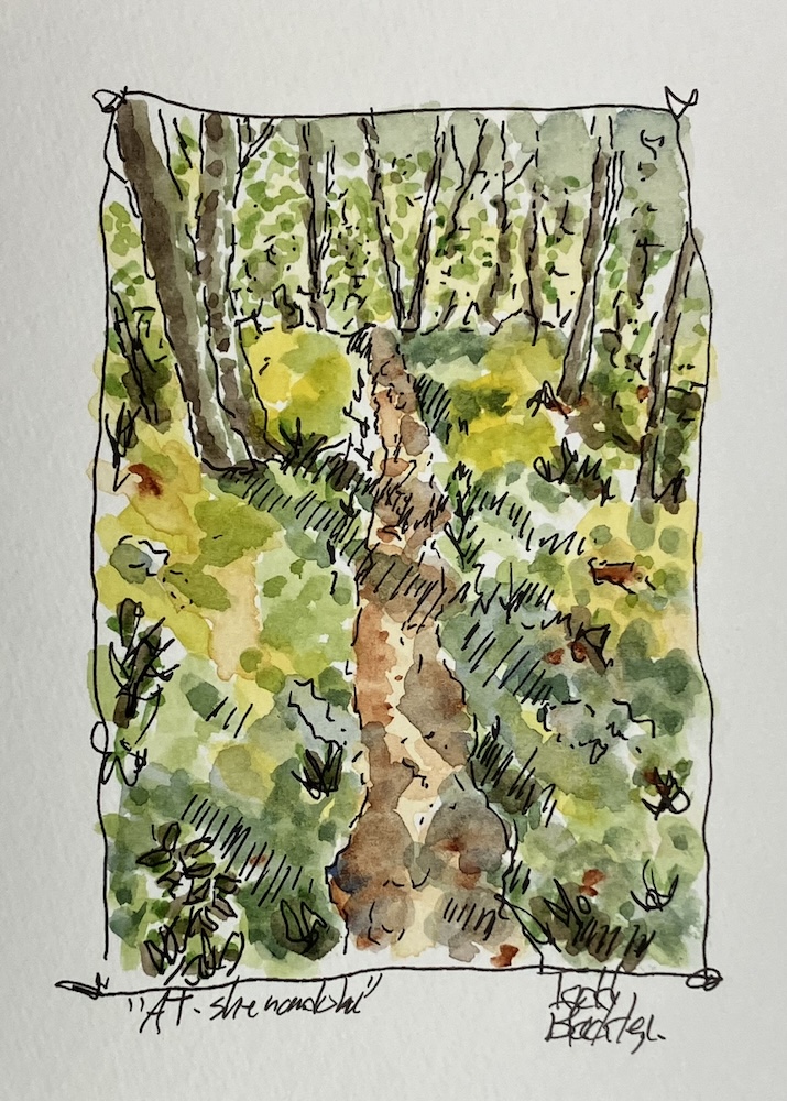 Ink and Watercolor, Approximately 3 x 4 inches. This is of the AT in Shenandoah NP.